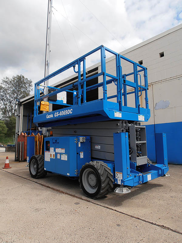 Leise und emissionsfrei: die vollelektrische und geländegängige Genie® GS™-3369 DC Scherenarbeitsbühne bewährt sich bei Innen- und Außeneinsätzen. Dank ihrer kompakten Abmessungen eignet sie sich ideal für Arbeiten auf beengtem Raum. Zusätzlich ist diese Arbeitsbühne dank ihrer Geländegängigkeit für Baustellen-, Wartungs- und Installationsarbeiten auf schwierigen Untergründen, Sand oder Schlamm sehr gut geeignet.