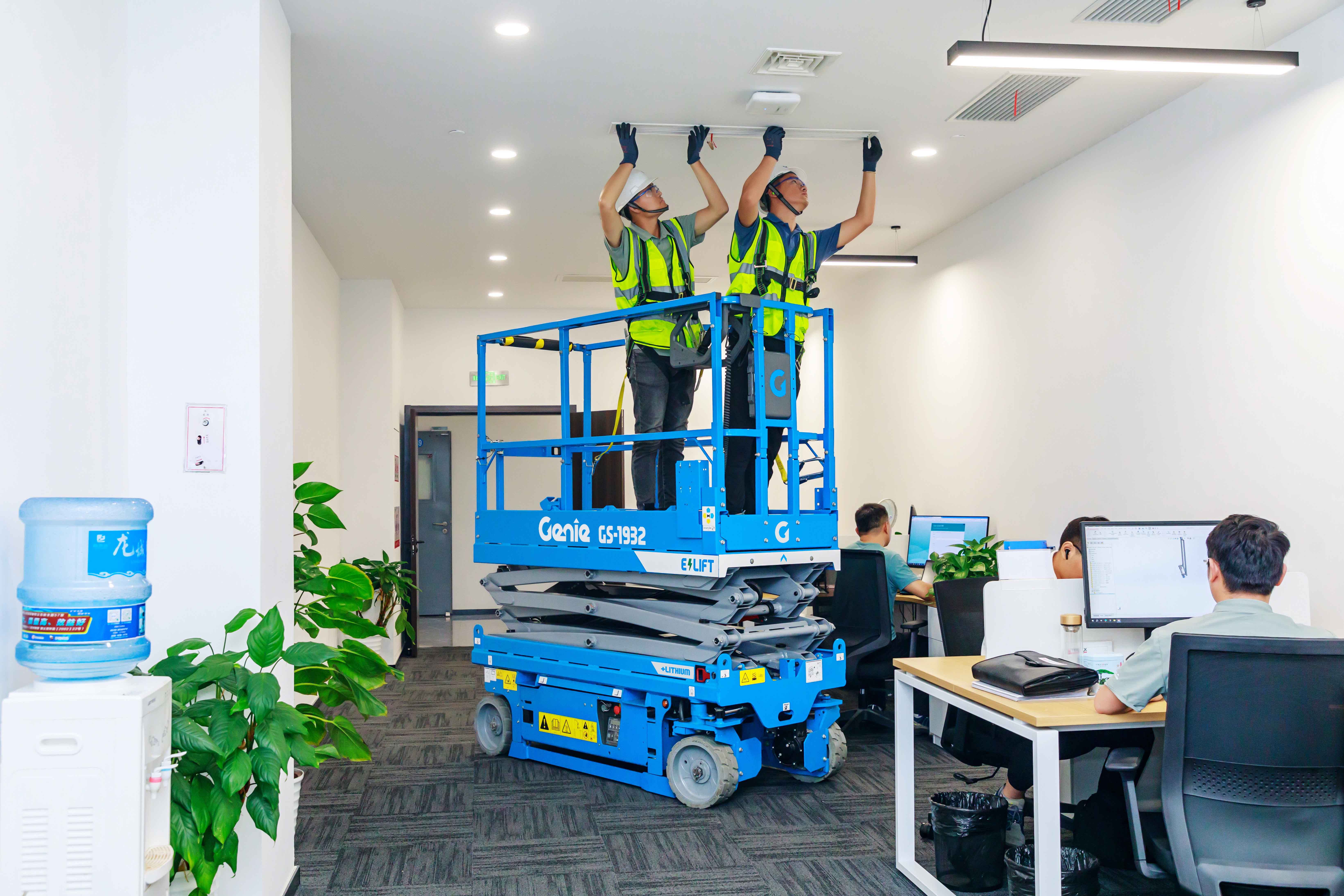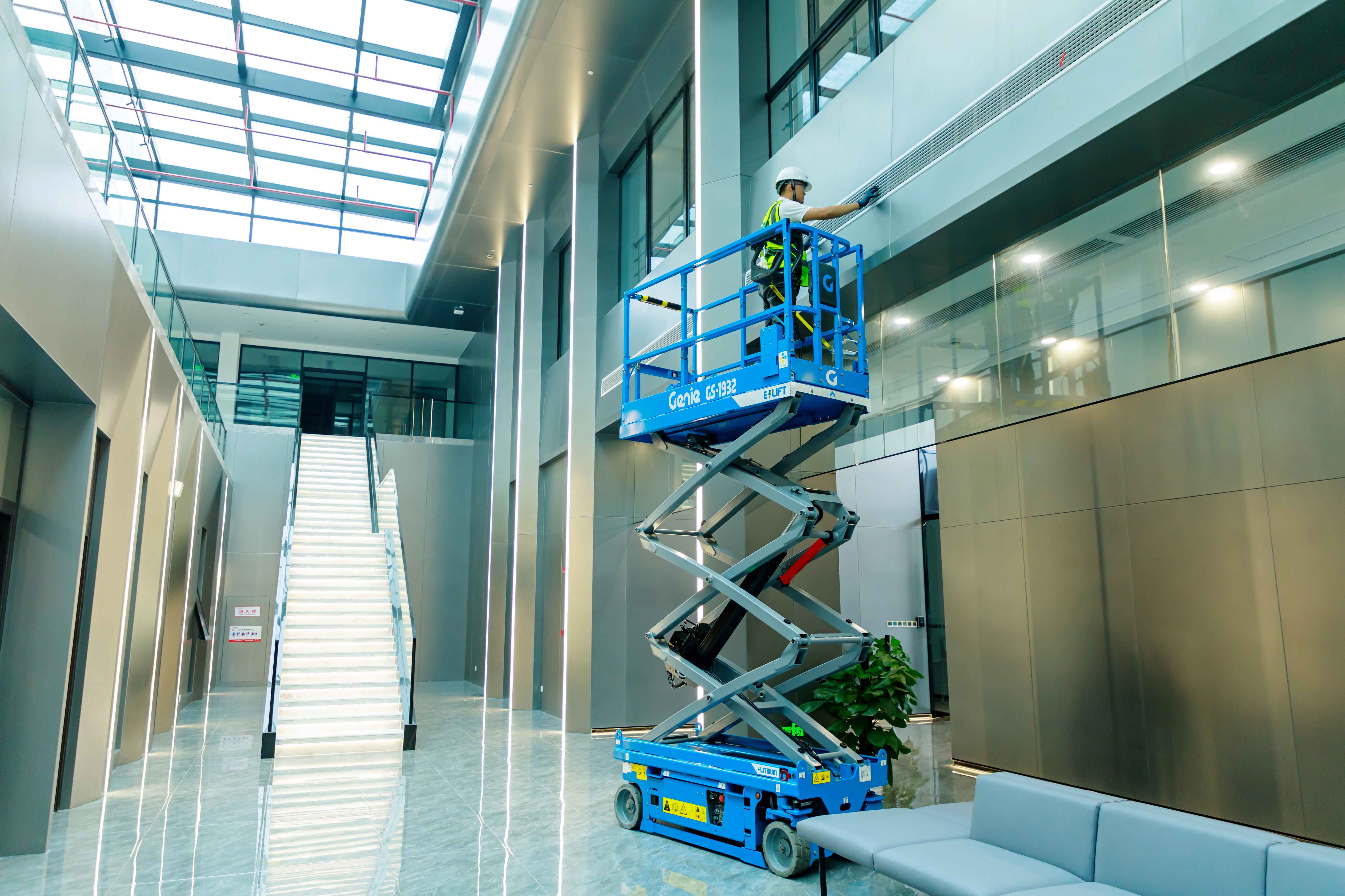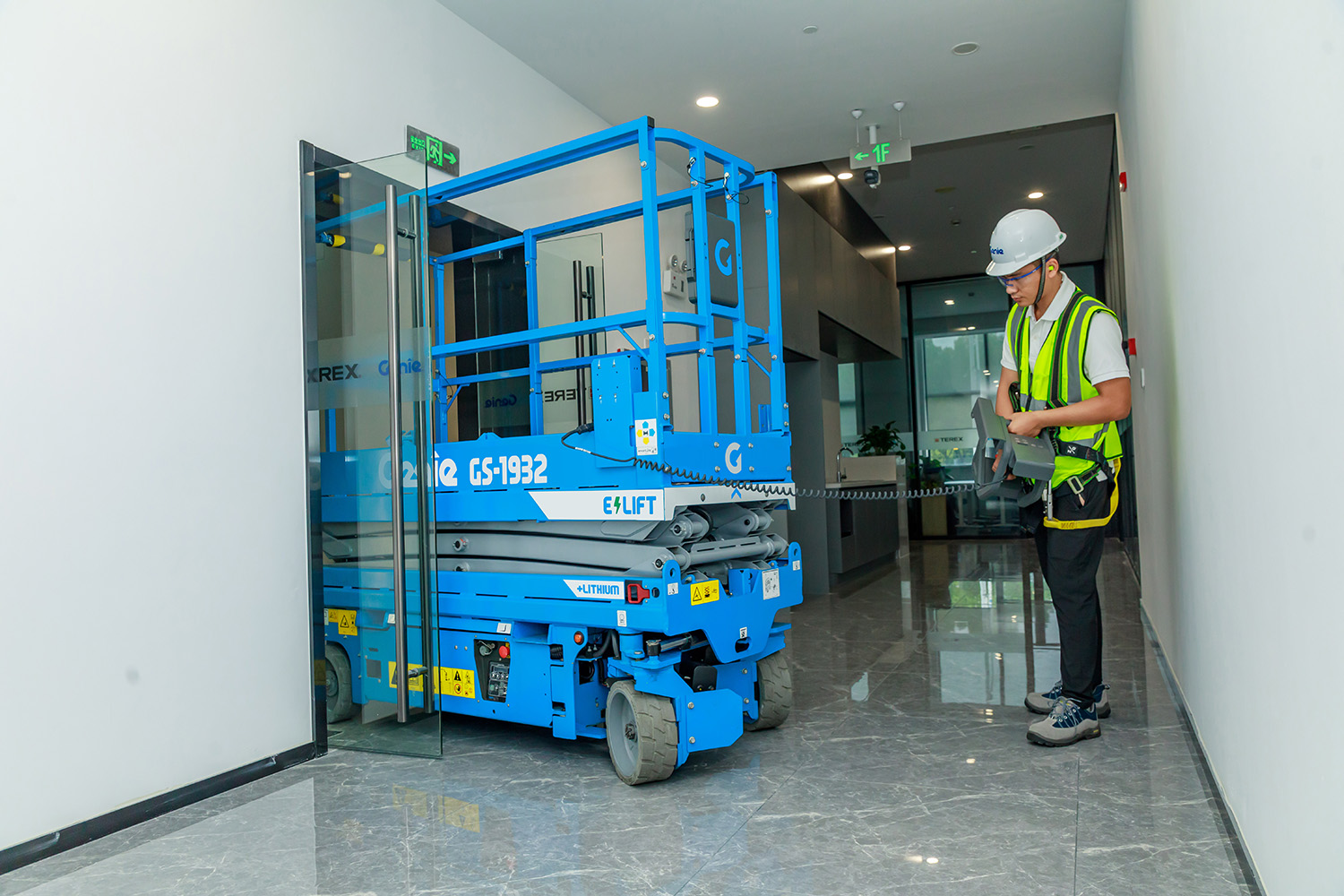 The Genie® GS™-1932 slab scissor lifts boast quiet electric operation and are ideal for indoor and outdoor applications in tight spaces on firm, level surfaces.