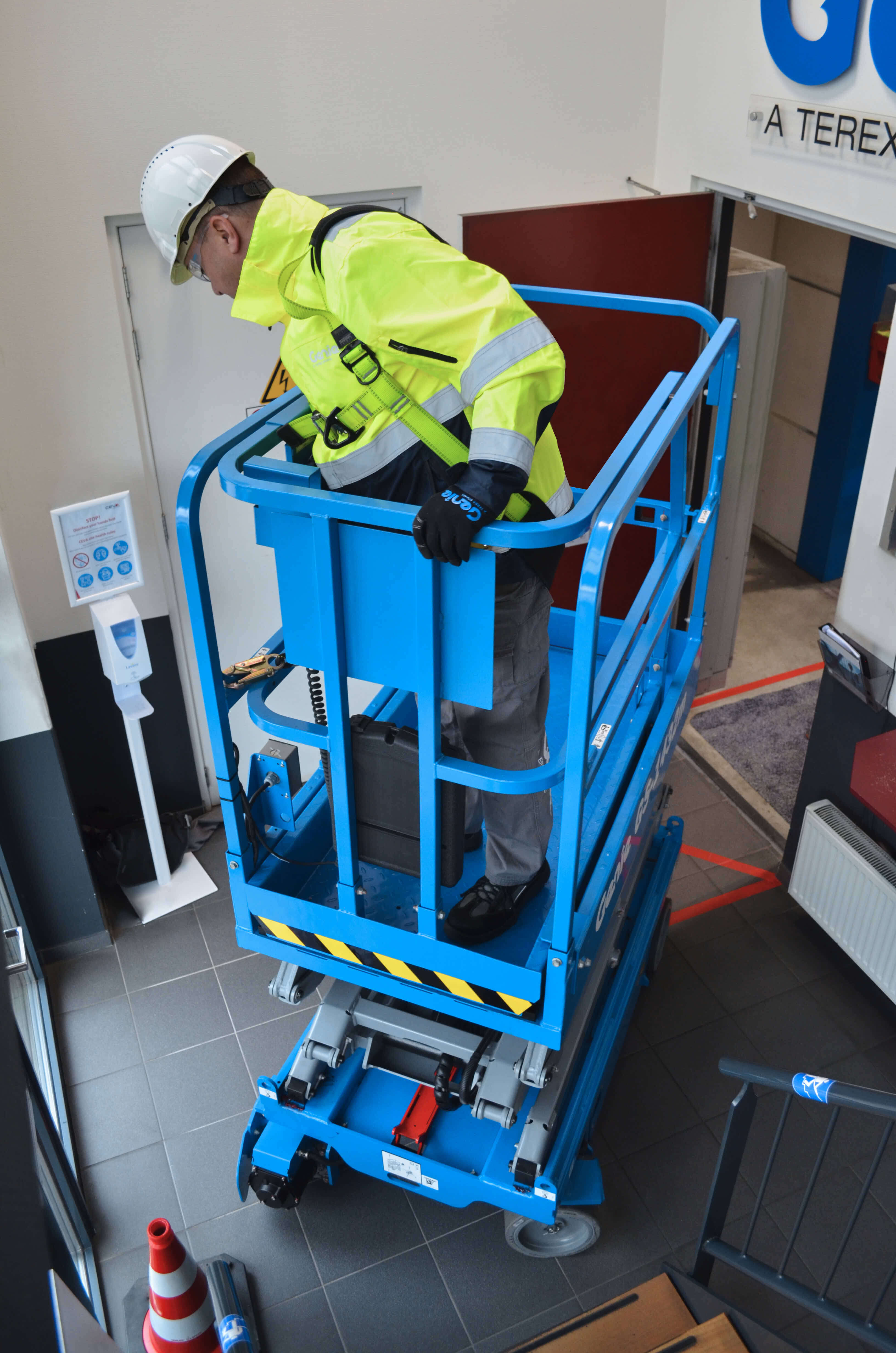Designed for low-level access on sensitive flooring and space restricted applications, the Genie® GS™-1432m E-Drive scissor lift delivers quality and durability while improving total cost of ownership and productivity. It is equipped with an efficient, all-electric AC drive system that offers unmatched productivity for getting around indoor and outdoor jobsites in a compact, lightweight and versatile package.