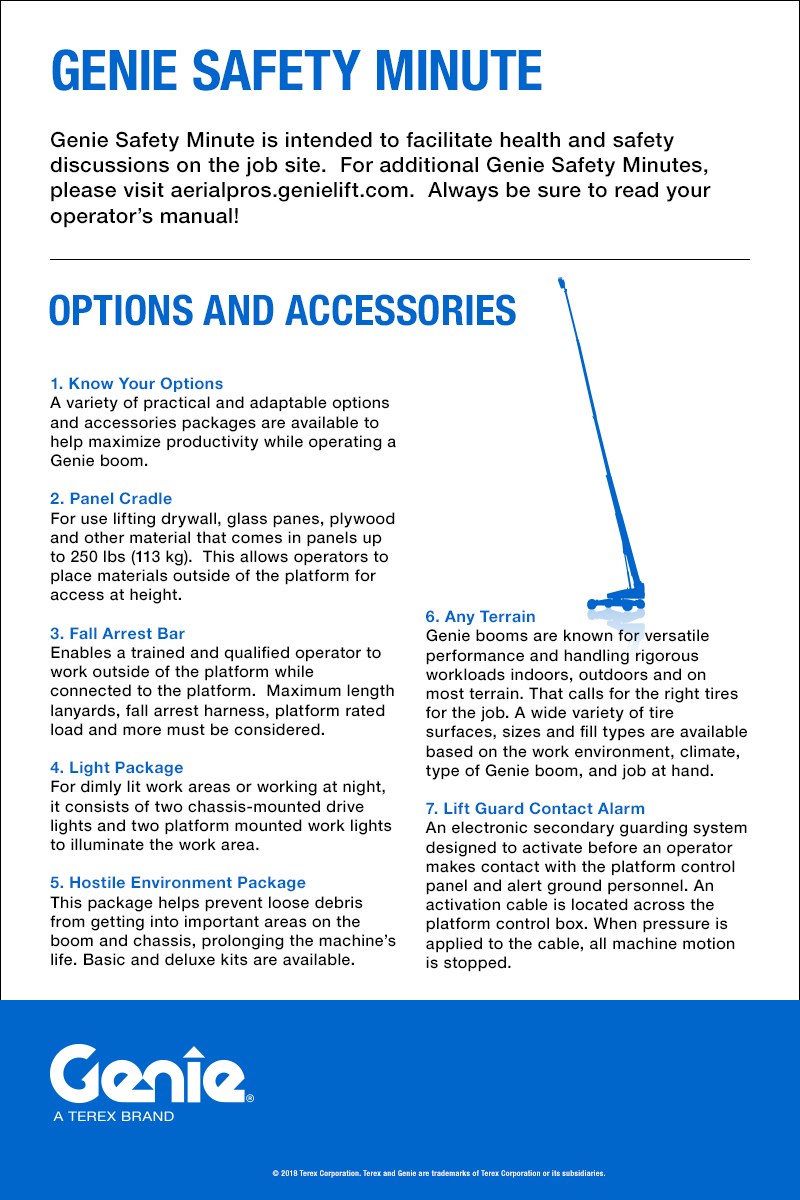 Genie Safety Minute is intended to facilitate health and safety discussions on the job site.