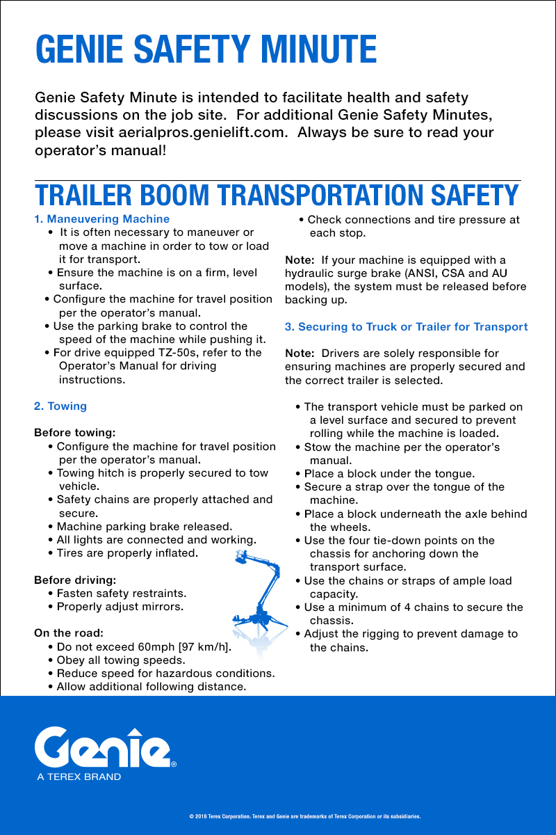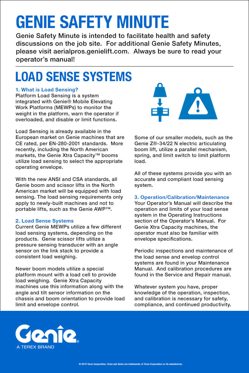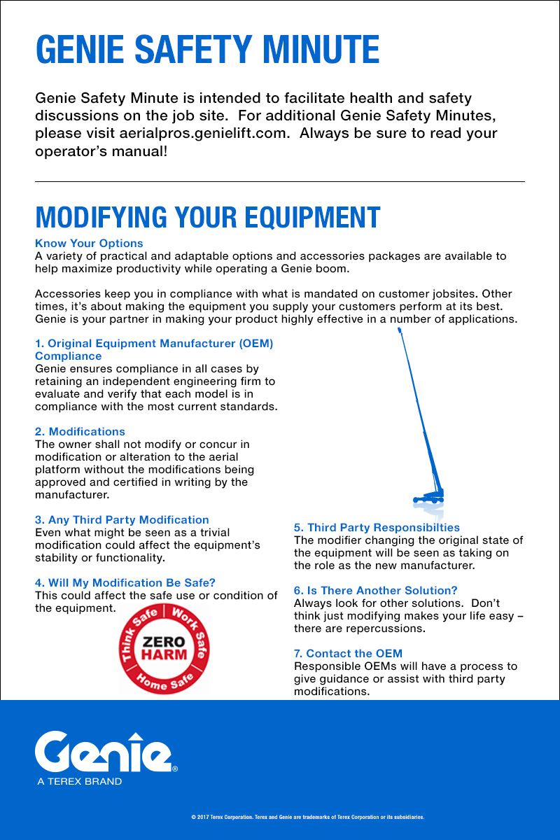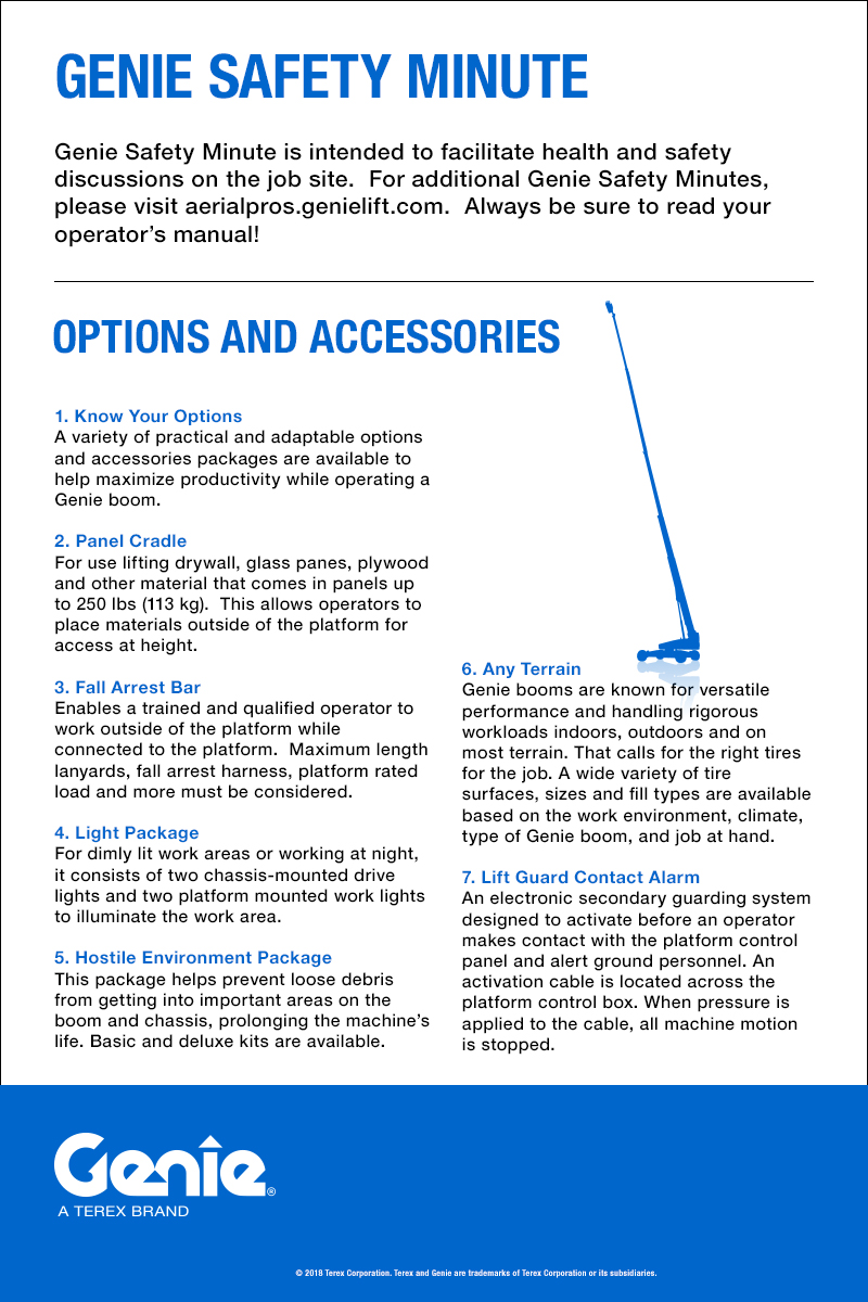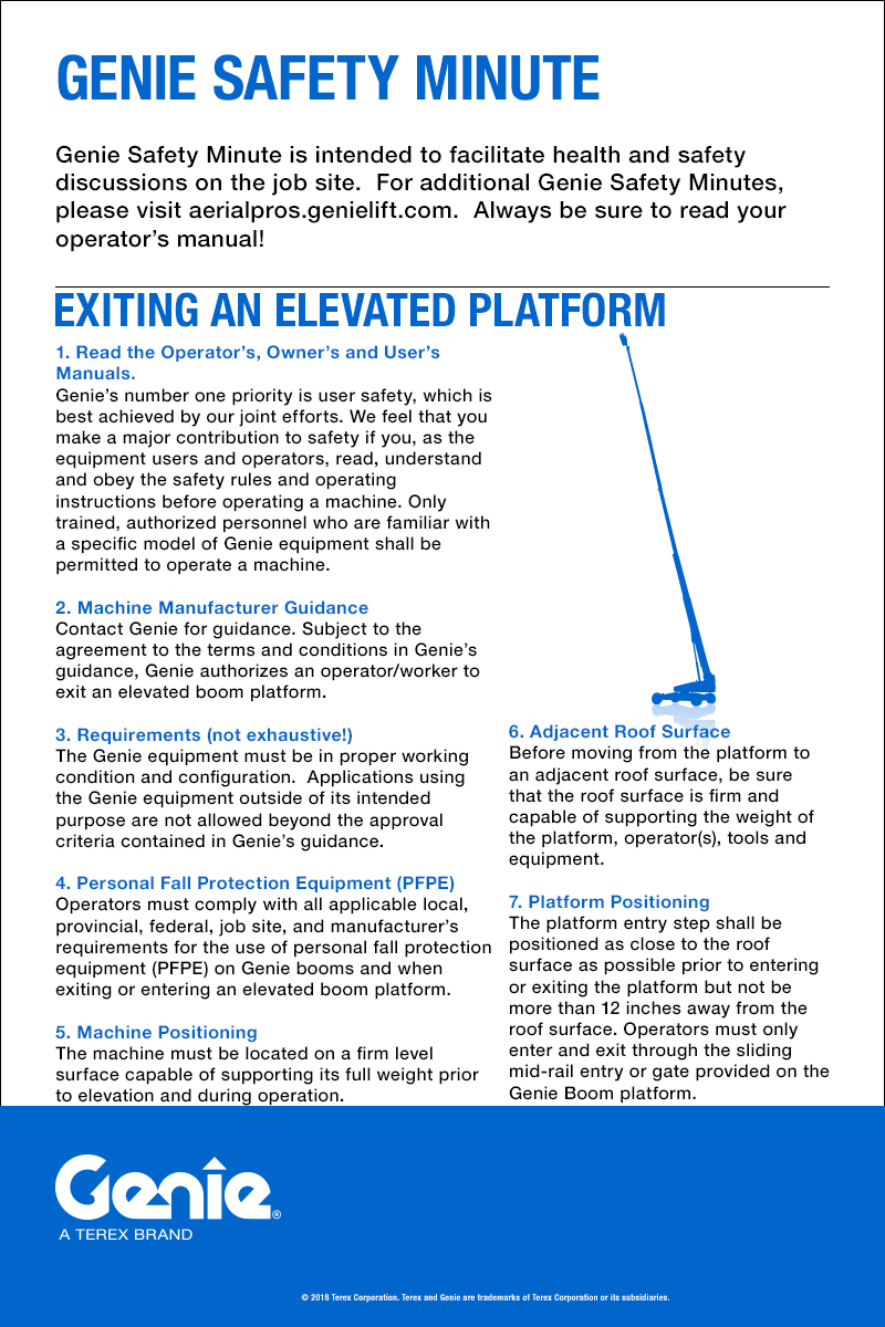 Genie Safety Minute is intended to facilitate health and safety discussions on the job site. For additional Genie Safety Minutes, visit Aerial Pros. Always read your operator's manual!