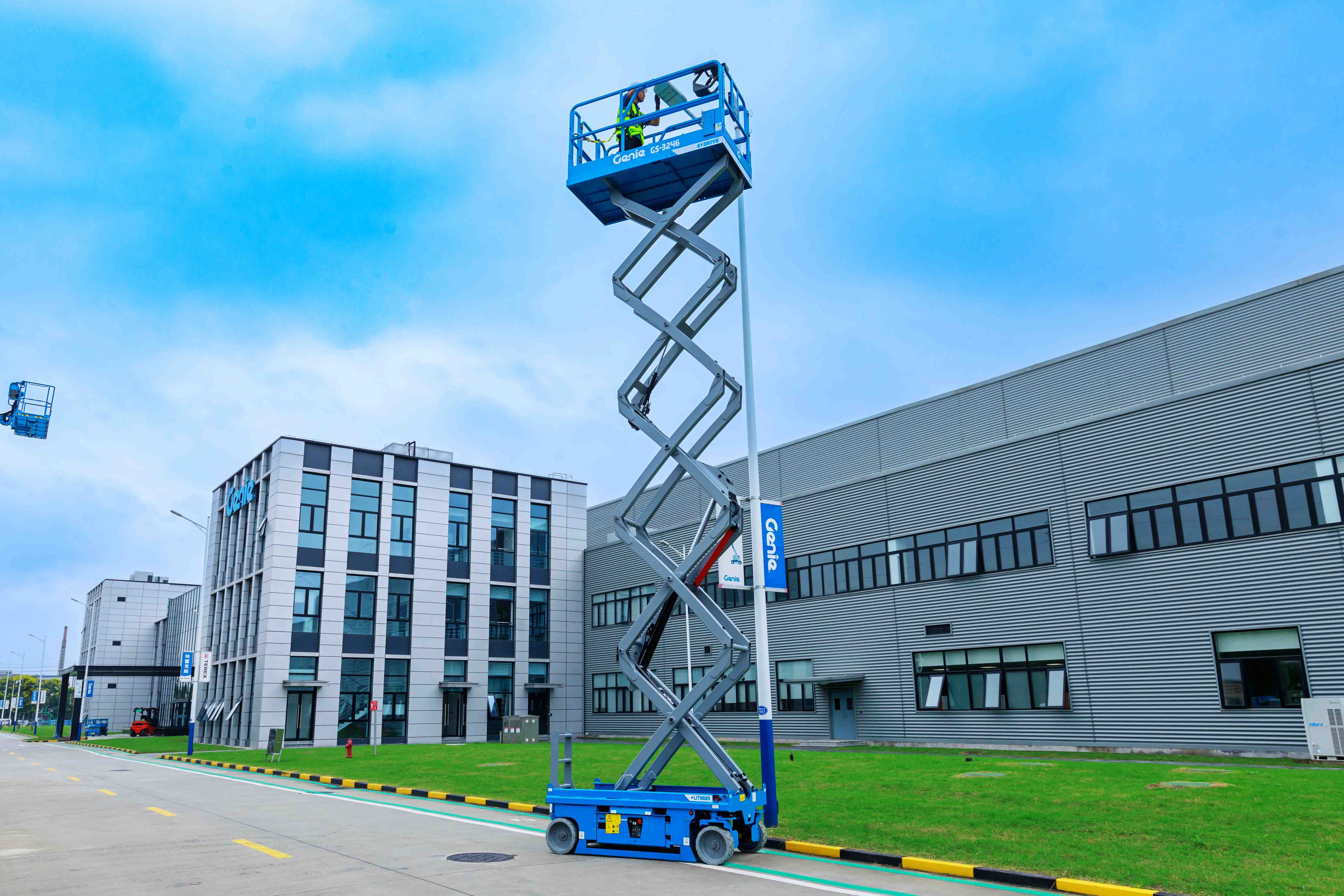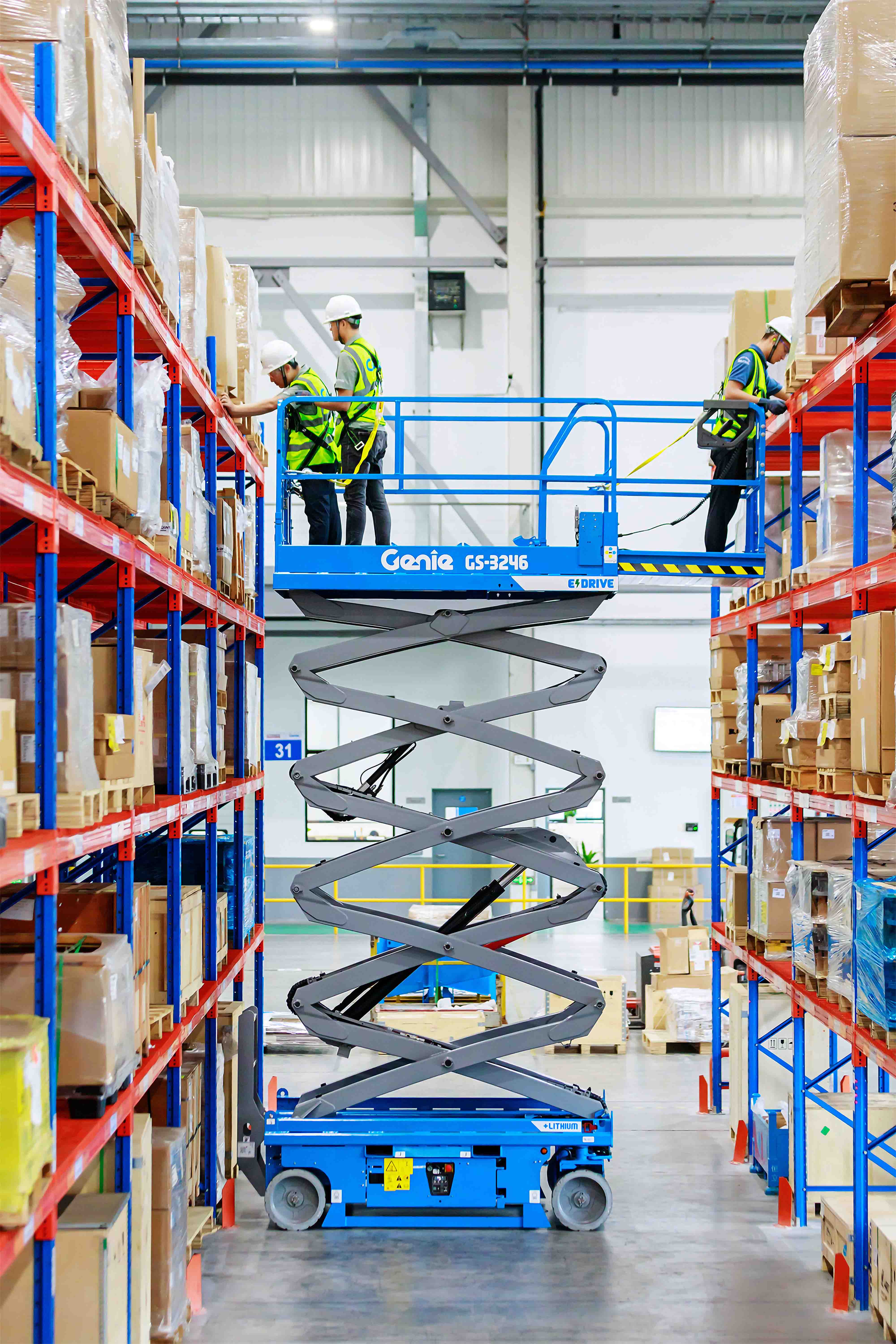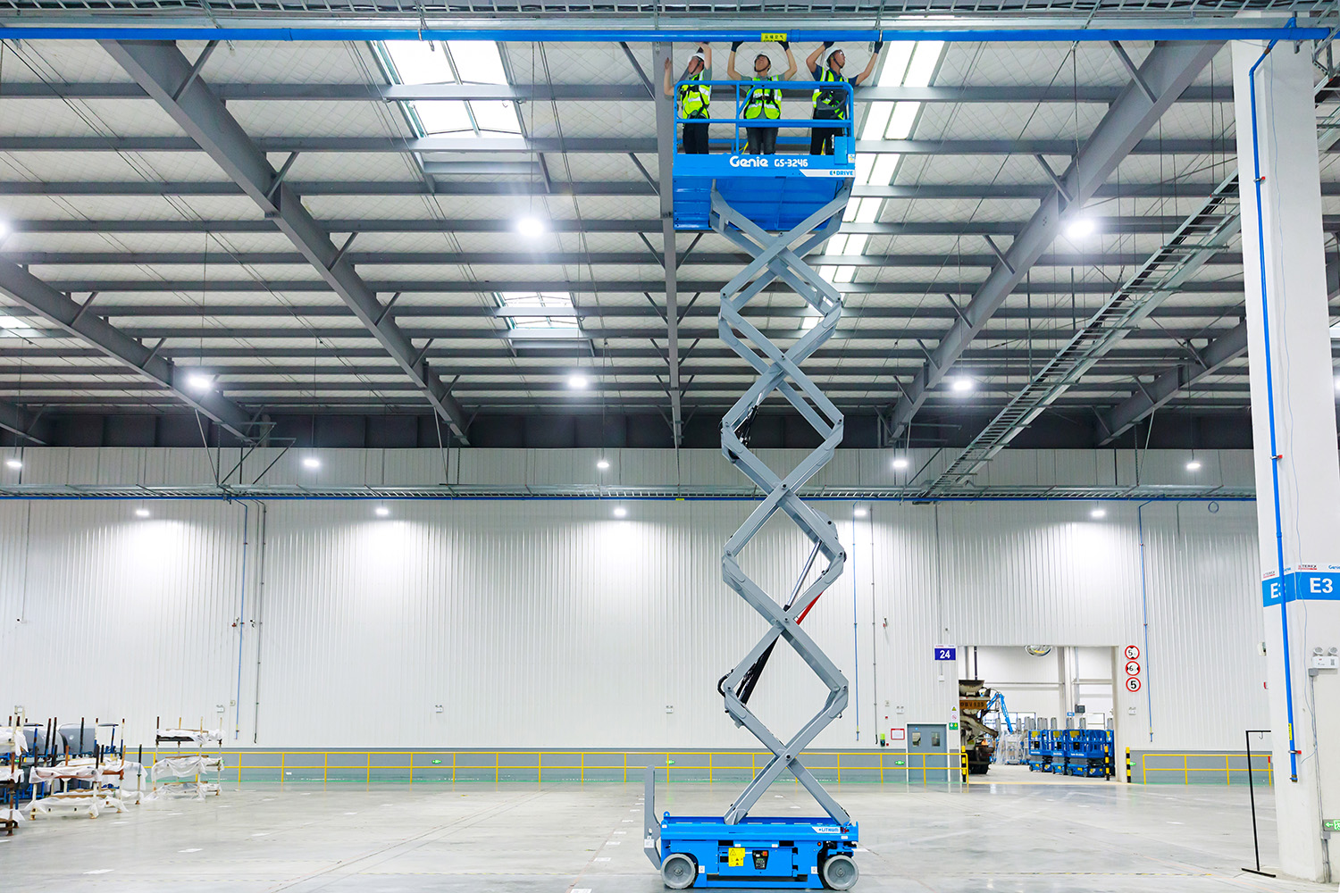 Las dimensiones compactas y el radio de giro interior cero hacen que la plataforma de tijera eléctrica GS™-3246 sea ideal para muchas tareas con poco espacio tanto en el interior como exterior. Cuenta con el sistema eléctrico Genie AC E-Drive de eficiencia y tiempo de funcionamiento inigualables cuando se requieren muchos desplazamientos.
